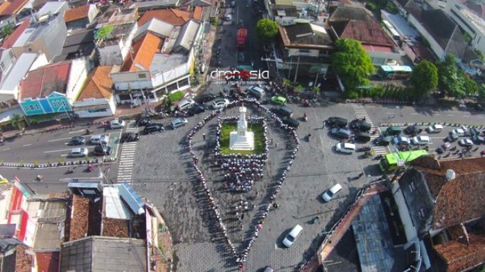 JOGJA – Kreatifitas dipadukan dengan teknologi ternyata menghasilkan karya menarik untuk dipandang. Satu diantaranya, ketika Tugu Pal Yogya dan 700 orang disekelilingya diabadikan oleh Dronesia.Jogja (Drone Indonesia Jogja).
