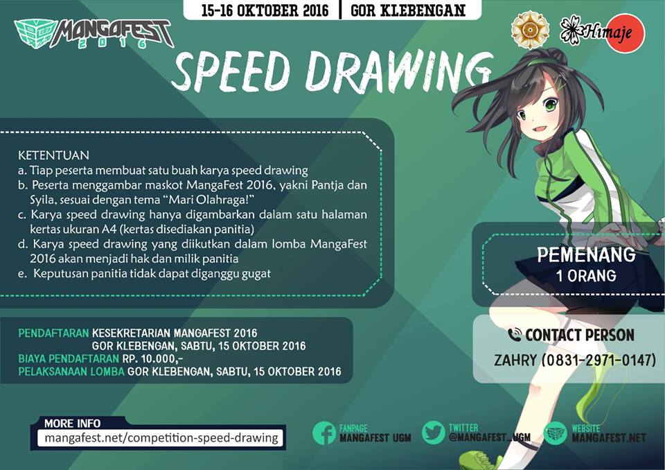 Speed Drawing adalah kompetisi dimana peserta harus membuat gambar dalam waktu yang ditentukan oleh panitia