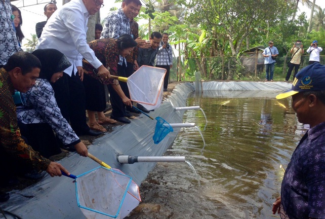 Penebaran bibit udang galah kali ini mengambil lokasi seluas 1.000 meter persegi milik salah satu petani dari Kelompok Tani Ugadi. Sri Adiningsih secara simbolis menebarkan bibit udang galah sebanyak 10.000 ekor.