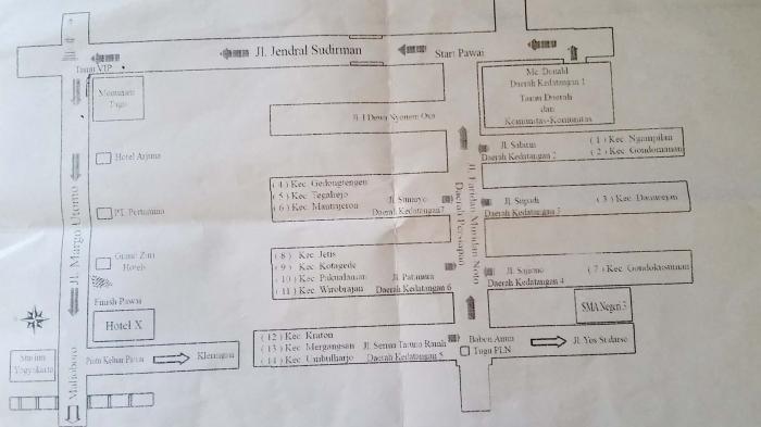 Kepala Dinas Perhubungan Kota Yogyakarta, Wirawan Hario Yudho menjelaskan rute pawai akan dimulai di Jalan Faridan M Noto, Jalan Jenderal Sudirman (Jembatan Gondolayu), Tugu, Jalan Margo Utomo, lalu berakhir di Jembatan Kleringan.